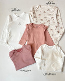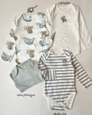 هرچقدر بادی تو کمد کوچولوت داشته باشی بازم کمه جزو واجبات کمد نی نی هاست مخصوصا اگه وارداتی باشه و لطیف مثل پوست نی نی از برند محبوبِ c&a مناسب نیوبرن تا سه سال سایز بندی سایز نیوبرن : (طرح سبز پسته ای ، صورتی کبریتی سر آستین چین دار) قد:۳۳ / پهنا: ۱۸ / آستین :۲۰ سایز (۲تا۳ ماه) (طرح سفید خال خالی، پنگوئن، سفید ساده) قد:۳۵ /پهنا:۱۹ / آستین :۲۲ سایز(۳تا۶ ماه) (طرح تدی کالباسی بغل دکمه دار، قواره کوچیک) قد:۳۲ / پهنا:۱۸ / آستین:۲۰ (طرح تدی راه راه ، کرم تدی بزرگ) قد:۳۷ / پهنا:۲۰ /آستین :۲۴ سایز(۶تا ۹ ماه) (طرح سفید ساده ، کرم تدی کوچولو) قد:۴۰ / پهنا:۲۱ /آستین :۲۵ سایز (۹تا۱۲ ماه) (طرح سفید خرگوش بغل دکمه دار) قد:۴۰ / پهنا:۲۴ /آستین :۲۹ (طرح راه راه صورتی ،سفید خرسی) قد:۴۱ / پهنا:۲۲ /آستین :۲۶ سایز(۱۲تا۱۸ ماه) طرح(کوآلا، ببری، حیوانات ،سفید ساده ) قد:۴۵ / پهنا:۲۳ /آستین :۲۹ سایز(۱۸ تا۲۴ ماه) (طرح خردلی ساده،راه راه زرشکی) قد:۴۶ / پهنا:۲۵ /آستین :۳۲ سایز(۲۴تا۳۶ماه) (طرح خاکی ساده) قد:۴۷ / پهنا:۲۵ /آستین :۳۳ سایز (۳تا ۴ سال) (طرح گل گلی ) قد:۵۱ / پهنا:۲۸ /آستین :۳۶ یکی دوسانت اختلاف اندازه گیری لحاظ شود . بها با احترام: ۱۹۸ تُ