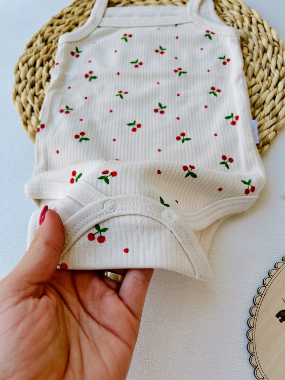 بادی بندی طرح گیلاس قشنگترین بادی که میتونستی پیدا کنی قطعا همینه قشنگترین عکسارو باهاش بگیر برای ماهگرد کوچولوت @kido.kids.shop @kido.kids.shop این بادی ترک جنسش پنبه فوق العاده نرم و لطیفه ضد حساسیت ، مناسب پوست لطیف نوزاد مناسب نوزادان تا ه دوتا رنگ شیری و کرمی داره . هم مناسب استفاده روزمره و زیر لباس هست چون بندی هستش اصلا از یقه لباس بیرون نمیزنه ، هم مناسب عکاسی و گرفتن عکسای قشنگ ماهگرد سایزبندی سایز ۱ ماه : قد بادی : ۳۳/ پهنا:۱۷ سایز ۳ ماه : قد بادی : ۳۵/ پهنا:۱۹ سایز ۶ ماه : قد بادی : ۳۶/ پهنا:۲۰ سایز ه : قد بادی : ۳۹/ پهنا:۲۲ یکی دوسانت اختلاف اندازه گیری لحاظ شود . بها با احترام : فقط ۱۹۹ تُ