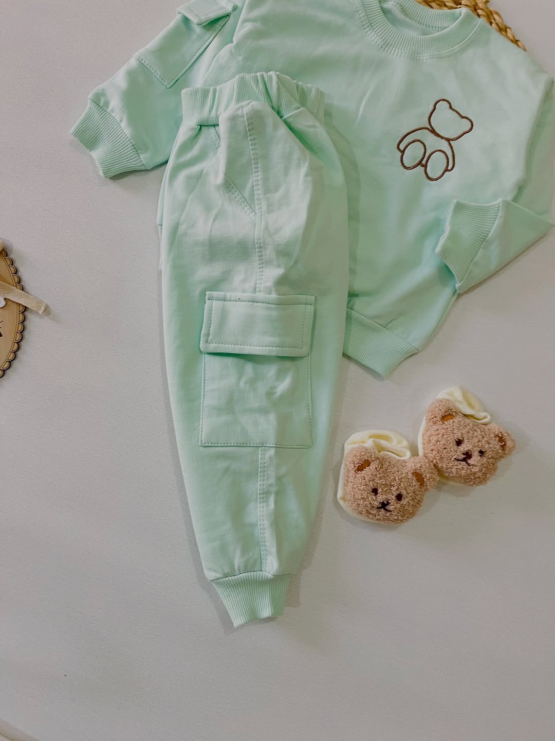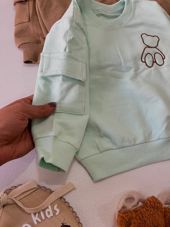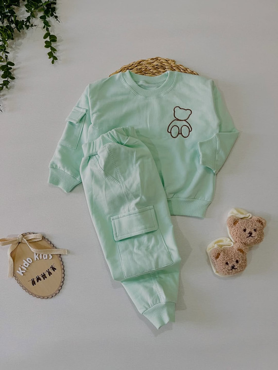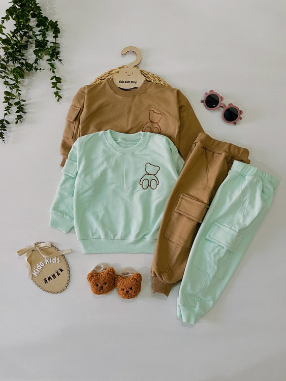 این ست شامل بلیز و شلوارهای تدی جذاب جنس دورس دونخ با کیفیت و لطیف است. مناسب از شش ماه تا دوسال با گلدوزی روی تدی به رنگهای شکلاتی و سبز پاستیلی.