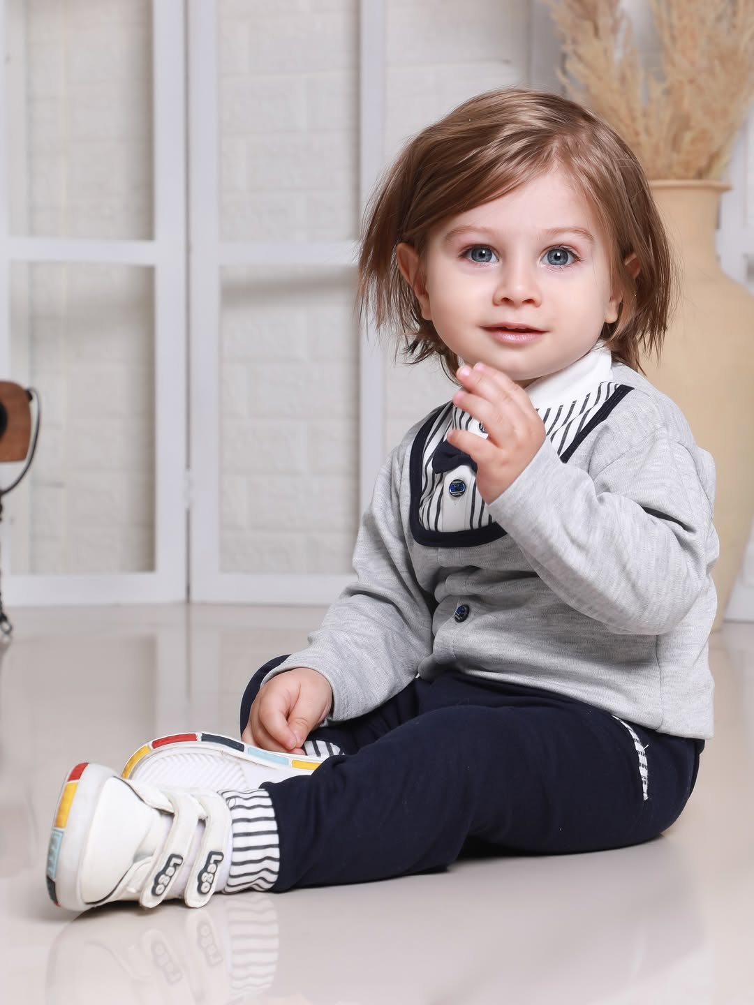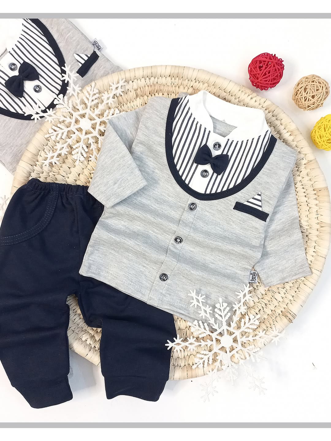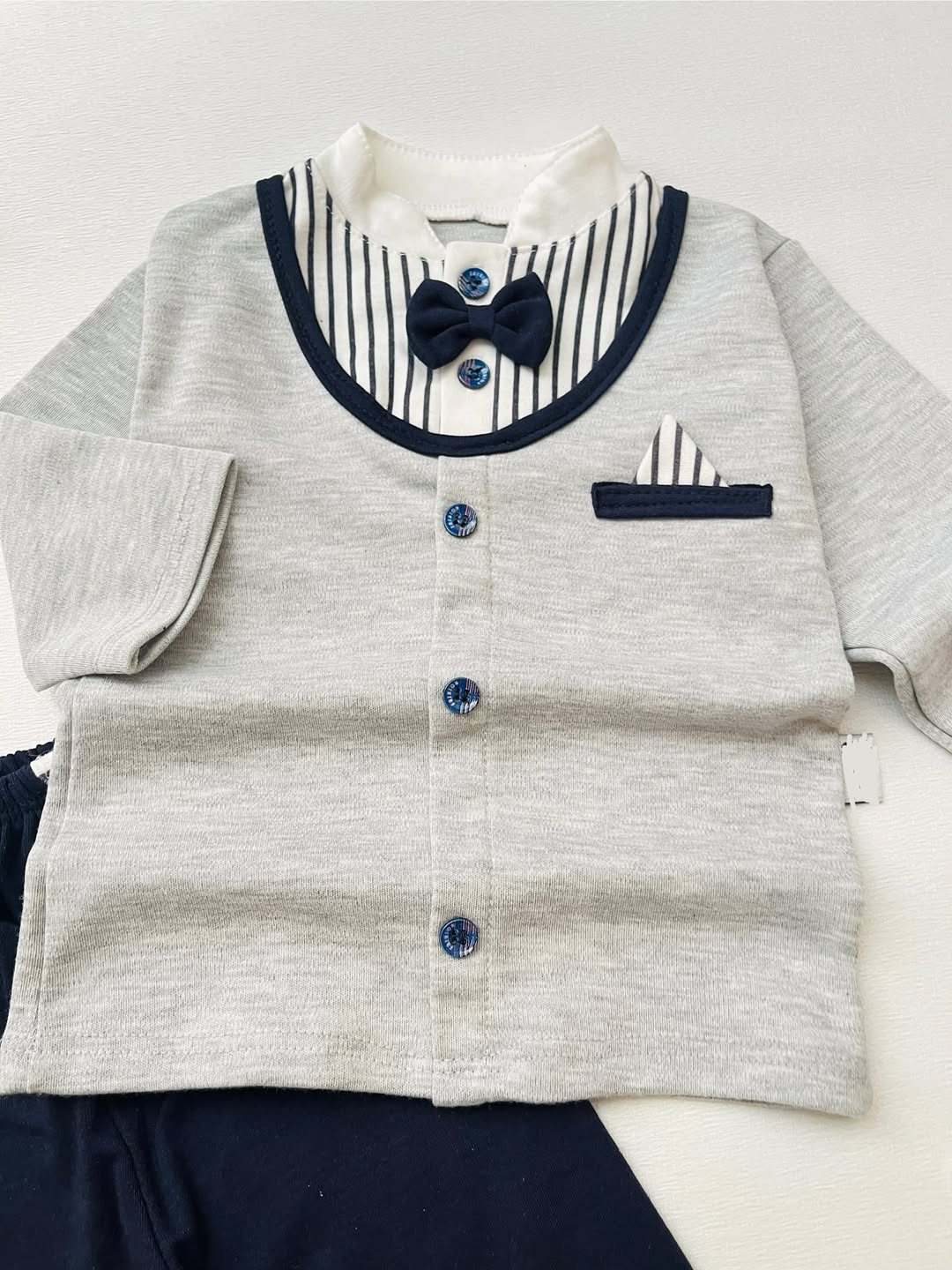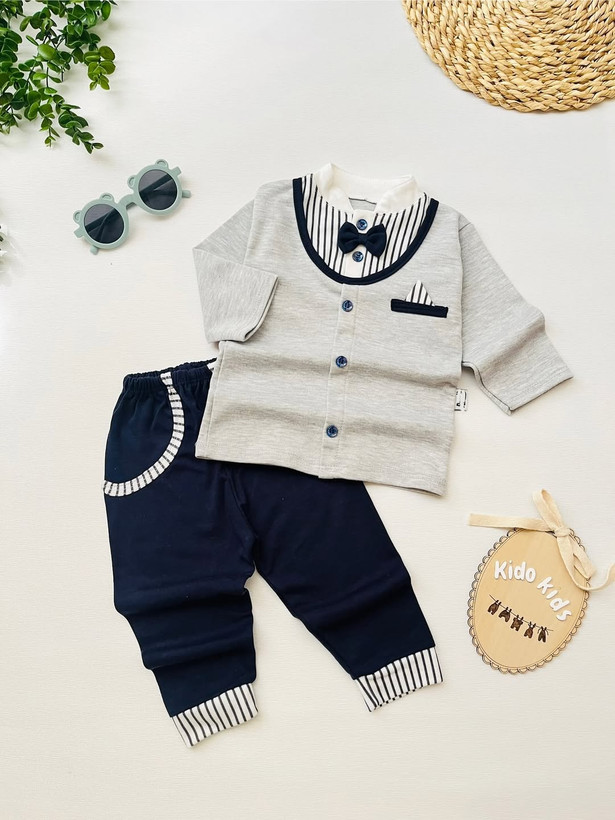 ست راحتی پسرونه با طراحی پاپیون و یقهی کلاسیک👶🏻🥰
