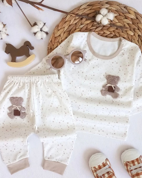 اینم از بلیز شلوار پانی، دلبرِپیجمون جنسش نخ پنبه عالی مناسب دخترو پسر مناسب بدو تولد تا سه سال سایزبندی سایز یک :قدبلیز:۳۰/پهنای بلیز:۲۲/قدآستین:۲۰/قدشلوار:۳۹/قدفاق:۱۸ سایز دو :قدبلیز:۳۴/پهنای بلیز:۲۴/قدآستین:۲۱/قدشلوار:۴۰/قدفاق:۱۹ سایز سه :قدبلیز:۳۵/پهنای بلیز:۲۶/قدآستین:۲۳/قدشلوار:۴۳/قدفاق:۲۰ سایز چهار :قدبلیز:۳۶/پهنای بلیز:۲۷/قدآستین:۲۶/قدشلوار:۴۵/قدفاق:۲۱ سایز پنج :قدبلیز:۳۹/پهنای بلیز:۲۹/قدآستین:۳۰/قدشلوار:۵۰/قدفاق:۲۳ یکی دوسانت اختلاف اندازه گیری رو در نظر بگیرید . با احترام : ۲۳۰
