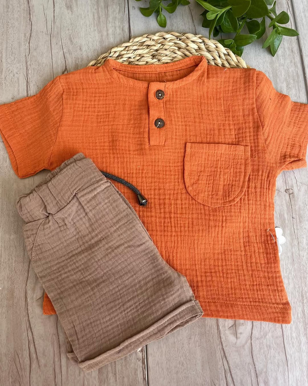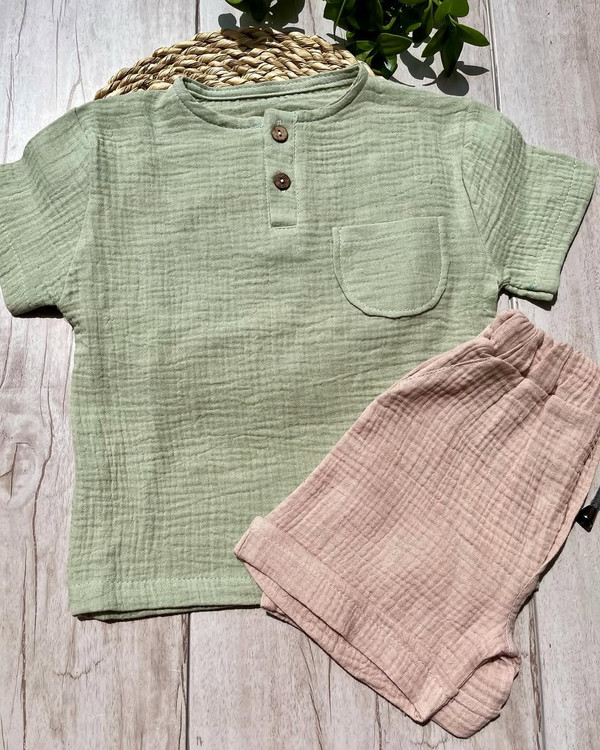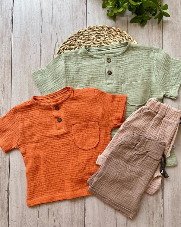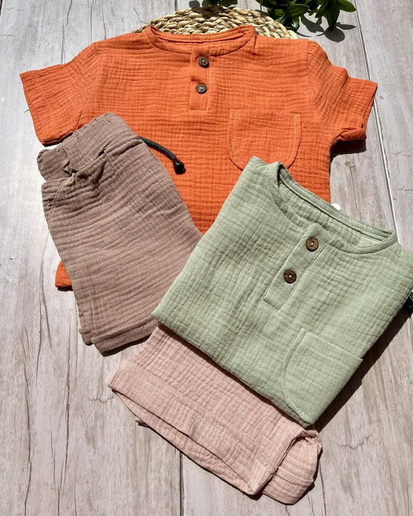 قشنگترین و خنک ترین ست تیشرت شلوارک تابستونی جنسش موسلین مناسب یکسال تا چهار سال (بازهم بستگی به جثه کوچولو داره ) دوتارنگ فوق العاده قشنگ داره نارنجی و سبز کاهوویی آبرفت نداره پرز نمیده رنگش نمیره و خلاصه که با خیال راحت انتخابش کن تنخور کار تو اسلاید آخر سایزبندی : رنگ نارنجی سایز یک قدتیشرت: ۳۱/ پهنای تیشرت: ۳۰/ قد شلوارک:۲۲ سایز دو قدتیشرت: ۳۴/ پهنای تیشرت:۳۰ / قد شلوارک:۲۴ سایز سه قدتیشرت: ۳۶/ پهنای تیشرت: ۳۱/ قد شلوارک:۲۵ سایز چهار قدتیشرت: ۳۹/ پهنای تیشرت: ۳۳/ قد شلوارک:۲۶ رنگ سبز کاهویی سایز سه قدتیشرت: ۳۷/ پهنای تیشرت: ۳۹/ قد شلوارک:۲۵ سایز چهار قدتیشرت: ۳۹/ پهنای تیشرت: ۳۴/ قد شلوارک:۲۶ یکی دوسانت اختلاف اندازه گیری رو درنظر بگیرید. سایز ۲ با احترام :۳۷۹ سایز ۳و۴ با احترام :۳۹۸